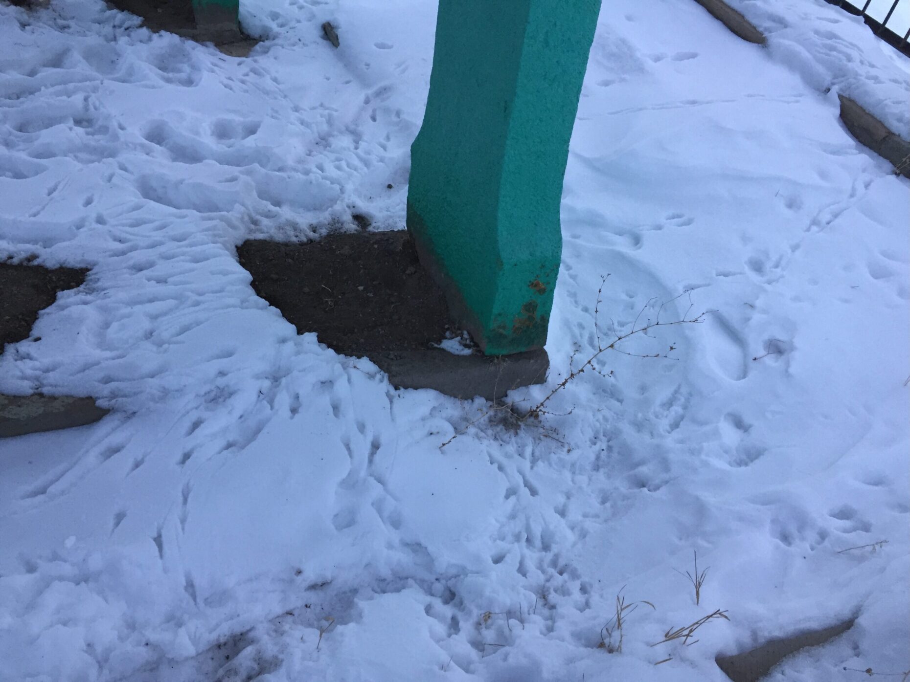 Karın üzeri kuşların ayak izleriyle dolu, belli ki orada toplanıyorlar. Biraz ileride karın ve buzun arasında kendine yol bulmuş akan derenin sesi geliyor.